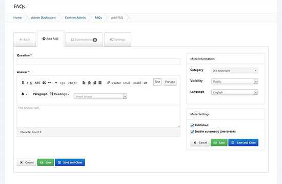 Frequent Asked Questions (Faqs) Infusion allows you to build a knowledgebase for site users to self-help troubleshooting or learn about common issues.