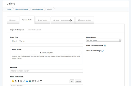 The Gallery Infusion is an intuitive way to blend photo management seamlessly and provide the photos to community users.