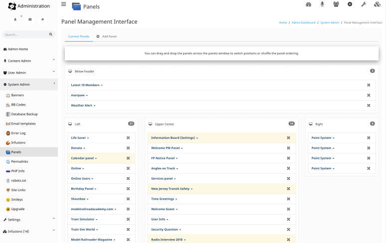 Here you can just drag and drop panel to layout your site. You can assign panels to only show up on certain pages. Panels can be hidden from non-members of your site.